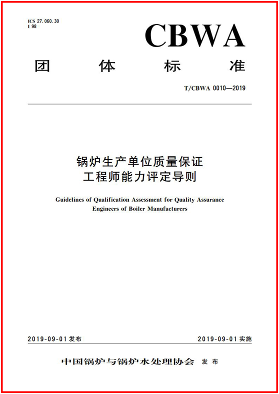 9月1日,由中國鍋爐與鍋爐水處理協會主導設計,由方快鍋爐有限公司參與制定的T/CBWA 0010-2019 《鍋爐生產單位質量保證工程師能力評定導則》正式發布。